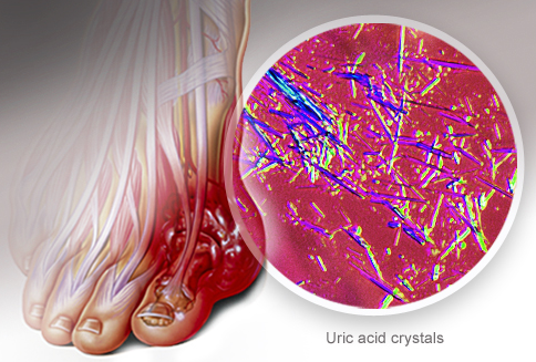 Gút là bệnh do rối loạn chuyển hoá các nhân purin => tăng acid uric máu => sự lắng đọng các tinh thể Monosodium urat trong dịch khớp hoặc ở các mô